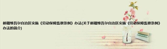 大家好,新疆维吾尔自治区实施《劳动保障监察条例》办法,关于新疆维吾尔自治区实施《劳动保障监察条例》办法的简介很多人还不知道,现在让我们一起来看看吧!