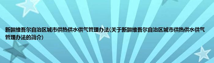 本文关于新疆维吾尔自治区城市供热供水供气管理办法的简介就讲解完毕,希望对大家有所帮助。