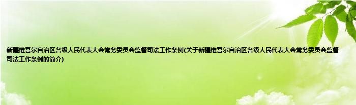 新疆维吾尔自治区各级人民代表大会常务委员会监督司法工作条例(关于新疆维吾尔自治区各级人民代表大会常务委员会监督司法工作条例的简介)