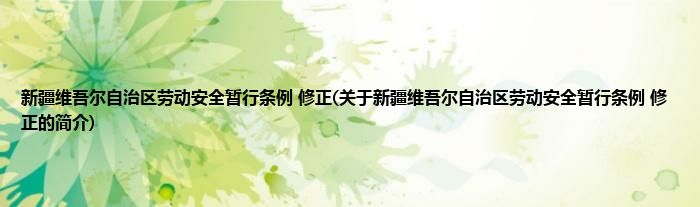 本文关于新疆维吾尔自治区劳动安全暂行条例 修正的简介就讲解完毕,希望对大家有所帮助。