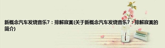1、 《新概念汽车发烧音乐7:排解寂寞》是群星演唱的一首歌曲。