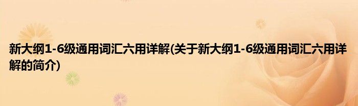本文关于新大纲1-6级通用词汇六用详解的简介就讲解完毕,希望对大家有所帮助。