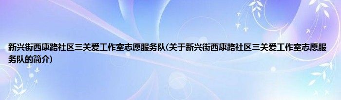 本文关于新兴街西康路社区三关爱工作室志愿服务队的简介就讲解完毕,希望对大家有所帮助。