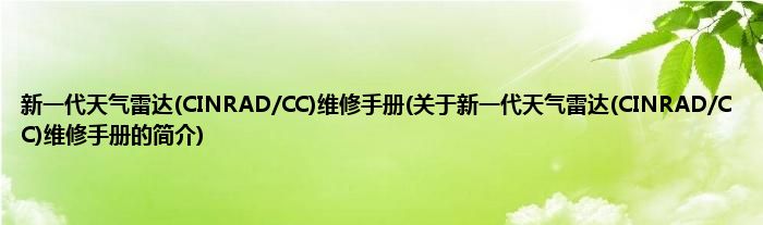 本文关于新一代天气雷达(CINRAD/CC)维修手册的简介就讲解完毕,希望对大家有所帮助。