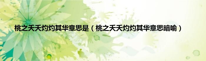 大家好,小常来为大家解答以上问题。桃之夭夭灼灼其华意思是,桃之夭夭灼灼其华意思暗喻很多人还不知道,现在让我们一起来看看吧!