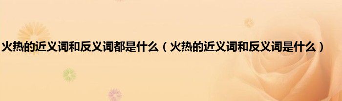 大家好,小常来为大家解答以上问题。火热的近义词和反义词都是什么,火热的近义词和反义词是什么很多人还不知道,现在让我们一起来看看吧!