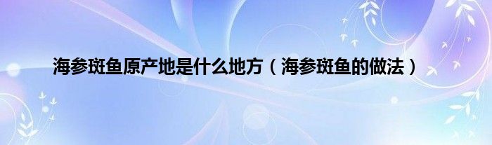 大家好,小科来为大家解答以上问题。海参斑鱼原产地是什么地方,海参斑鱼的做法很多人还不知道,现在让我们一起来看看吧!