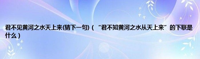 大家好,小常来为大家解答以上问题。君不见黄河之水天上来(猜下一句),“君不知黄河之水从天上来”的下联是什么很多人还不知道,现在让我们一起来看看吧!