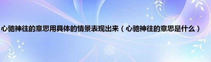 大家好,小常来为大家解答以上问题。心驰神往的意思用具体的情景表现出来,心驰神往的意思是什么很多人还不知道,现在让我们一起来看看吧!