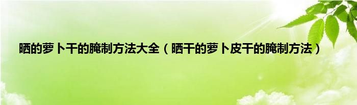 大家好,小常来为大家解答以上问题。晒的萝卜干的腌制方法大全,晒干的萝卜皮干的腌制方法很多人还不知道,现在让我们一起来看看吧!