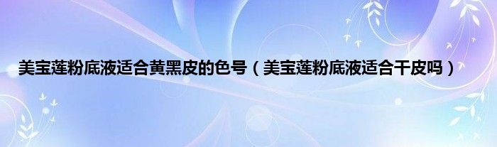 大家好,小科来为大家解答以上问题。美宝莲粉底液适合黄黑皮的色号,美宝莲粉底液适合干皮吗很多人还不知道,现在让我们一起来看看吧!