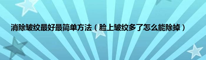 大家好,小科来为大家解答以上问题。消除皱纹最好最简单方法,脸上皱纹多了怎么能除掉很多人还不知道,现在让我们一起来看看吧!