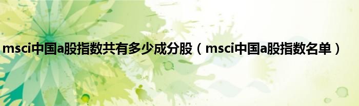 大家好,小常来为大家解答以上问题。msci中国a股指数共有多少成分股,msci中国a股指数名单很多人还不知道,现在让我们一起来看看吧!
