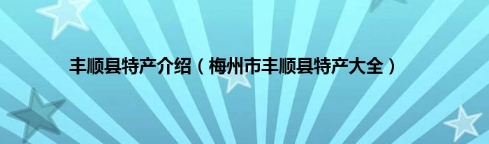 大家好,小常来为大家解答以上问题。丰顺县特产介绍,梅州市丰顺县特产大全很多人还不知道,现在让我们一起来看看吧!