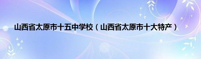 大家好,小常来为大家解答以上问题。山西省太原市十五中学校,山西省太原市十大特产很多人还不知道,现在让我们一起来看看吧!