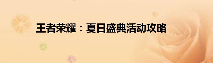 小编今天给各位玩家朋友们带来的王者荣耀:夏日盛典活动攻略,有记得的玩家朋友吗?不记得也没有关系,小编已经帮助大家把王者荣耀:夏日盛典活动攻略找了出来,你只需要动动你的小手就可以轻松知道啦,快来瞧一瞧吧。