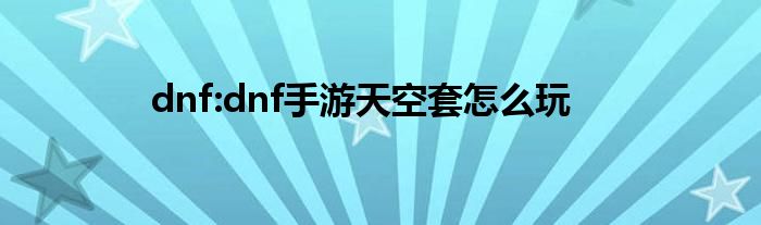小编今天给各位玩家朋友们带来的dnf:dnf手游天空套怎么玩,有记得的玩家朋友吗?不记得也没有关系,小编已经帮助大家把dnf:dnf手游天空套怎么玩找了出来,你只需要动动你的小手就可以轻松知道啦,快来瞧一瞧吧。