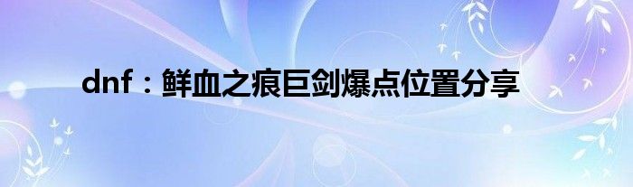 小编今天给各位玩家朋友们带来的是dnf:鲜血之痕巨剑爆点位置分享,有记得的玩家朋友吗?不记得也没有关系,小编已经帮助大家把dnf:鲜血之痕巨剑爆点位置分享找了出来,你只需要动动你的小手就可以轻松知道啦,快来瞧一瞧吧。