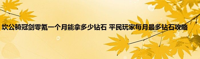 以上就是坎公骑冠剑每个月最多可以获得钻石的全部内容了。