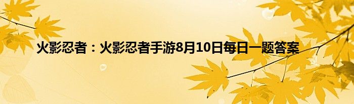 以上就是火影忍者:火影忍者手游8月10日每日一题答案的推荐,相信通过火影忍者:火影忍者手游8月10日每日一题答案这篇文章能帮到你,也欢迎对游戏很感兴趣小伙伴们一起来探讨。