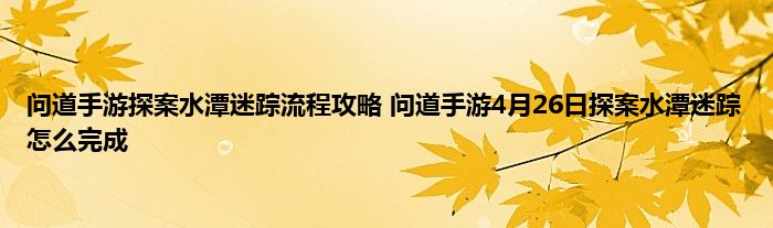 问道手游4月26日探案水潭迷踪怎么做?问道手游新开启了探案任务,这次的探案是水潭迷踪任务,这个任务还是很经典的。不过这个任务具体的流程可能大家不是很清晰,下面就带来了详细的任务攻略,希翼大家喜欢。