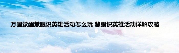 万国觉醒慧眼识英雄活动中玩家通过竞猜可以获得丰厚的奖励,很多玩家都想得到竞猜奖励,但是却不知道万国觉醒慧眼识英雄活动怎么玩,因此很多玩家想知道万国觉醒慧眼识英雄活动怎么玩?蚕豆小编为您带来万国觉醒慧眼识英雄活动详解。