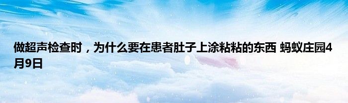 做超声检查时,医生为什么要在患者肚子上涂粘粘的东西?这是蚂蚁庄园2021年4月9日的问题。做过超声波检查的网友都知道,超声波检查会在肚子上涂上东西。其实这是涂耦合剂。这些问题的正确答案是什么呢?下面就和小编一起来看看吧!