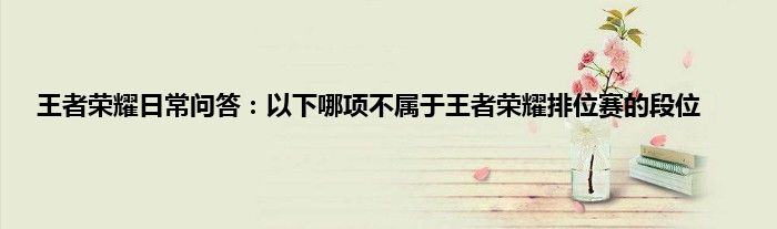 以上就是王者荣耀日常问答:以下哪项不属于王者荣耀排位赛的段位的推荐,相信通过王者荣耀日常问答:以下哪项不属于王者荣耀排位赛的段位这篇文章能帮到你,也欢迎对游戏很感兴趣小伙伴们一起来探讨。