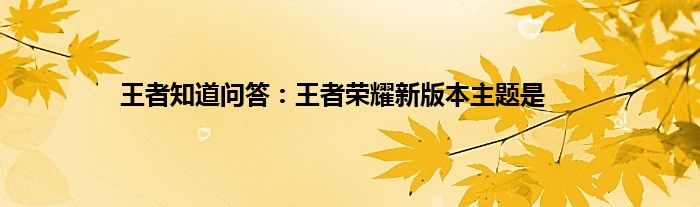小编今天给各位玩家朋友们带来的是王者知道问答:王者荣耀新版本主题是,有记得的玩家朋友吗?不记得也没有关系,小编已经帮助大家把王者知道问答:王者荣耀新版本主题是找了出来,你只需要动动你的小手就可以轻松知道啦,快来瞧一瞧吧。