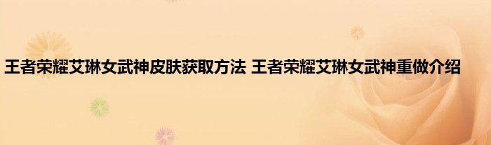 以上就是游侠小编为大家带来的王者荣耀艾琳女武神猎取方法,小伙伴们怎么看呢?