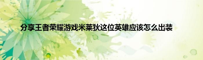今天弟哥来聊聊一篇关于王者荣耀游戏米莱狄这位英雄应该怎么出装的文章,游戏是很多人的选择,但是游戏玩多了也会身心疲惫,现在就为大家来简单介绍下王者荣耀游戏米莱狄这位英雄应该怎么出装,希望对各位小伙伴们有所帮助。