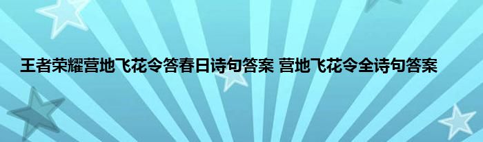 王者荣耀营地飞花令答春日诗句答案是什么?王者荣耀新的活动飞花令已经开启了,这个活动中有一个部分是需要玩家回答完整诗句的。一些诗句的可能大家不是很熟悉,这里就带来了全部诗句的答案,希望大家喜欢。