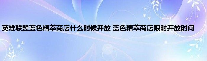 2021英雄联盟蓝色精萃商店什么时候开放?英雄联盟11.10版本更新后,开启了新的蓝色精粹商店,这个商店开启后能购买很多东西,因此应该也有不少玩家期待。那么具体的开放时间是什么时候呢?这里就带来了详细内容,希翼大家喜欢。