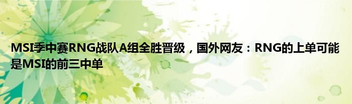 -RNG战队目前来看很有可能是今年MSI季中冠军赛上的最强战队,RNG战队和另外两只小组第一的战队相比赢得太干脆利落了。
