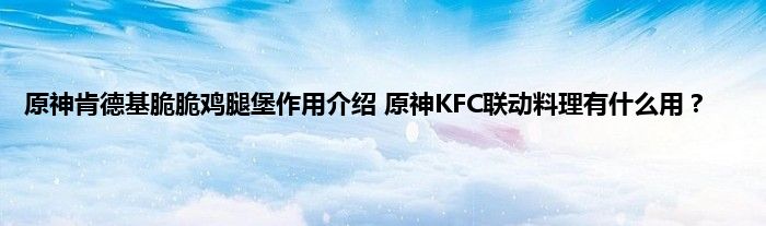 原神肯德基脆脆鸡腿堡作用介绍 原神KFC联动料理有什么用?原神与KFC联动正在火热进行中,除了通过在肯德基门店购买联动套餐获得联动限定物品之外,游戏中还可以制作肯德基的汉堡等联动料理,很多小伙伴不知道这些料理有什么用,下面就跟着小编一起看看吧。