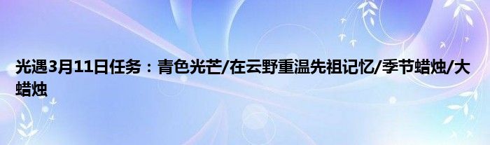 光遇游戏中每周都会给玩家们一些任务让玩家们完成,完成后就会有相应的奖励,那么3.11任务该怎么完成?,大蜡烛的位置在哪?对应的光芒在哪?很多玩家们都想知道下面蚕豆君带大家一起来了解一下吧!