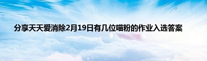 今天是2月19日,今天的天天爱消除每日一题的问题是在最新一期成语课堂里有几位喵粉的作业入选上墙展示了呢?很多玩家表示不知道这道题的答案,小编特意整理了相关的资讯,答对可获得天天爱消除每日一题幸运扭蛋机抽奖资格,可获得积分、金币和宠物等好礼。