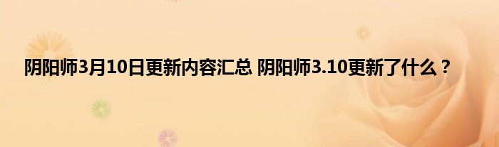 阴阳师3月10日更新内容汇总 阴阳师3.10更新了什么?阴阳师今天进行了更新,游戏更新带来了很多新的玩法,同时上线了一些新的活动,修复了bug,优化了游戏体验等等,那么阴阳师具体更新了什么呢,下面就跟着小编一起看看吧。