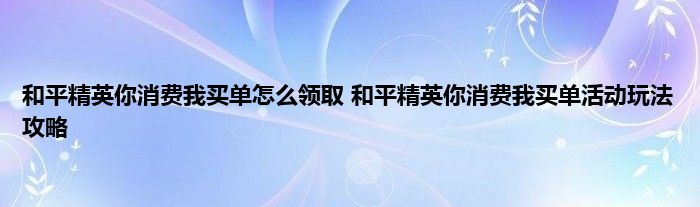 和平精英你消费我买单领取攻略