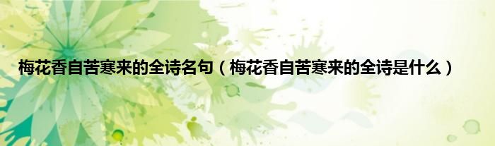 大家好,小科来为大家解答以上问题。梅花香自苦寒来的全诗名句,梅花香自苦寒来的全诗是什么很多人还不知道,现在让我们一起来看看吧!