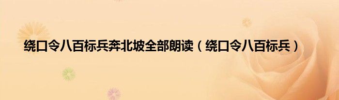 大家好,小科来为大家解答以上问题。绕口令八百标兵奔北坡全部朗读,绕口令八百标兵很多人还不知道,现在让我们一起来看看吧!