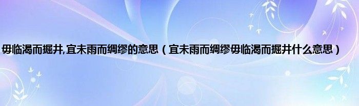 1、 意思是:不下雨的时候最好把门窗拴好,不要觉得渴了才开始挖井。