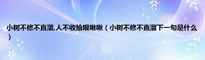 大家好,小科来为大家解答以上问题。小树不修不直溜,人不收拾哏啾啾,小树不修不直溜下一句是什么很多人还不知道,现在让我们一起来看看吧!