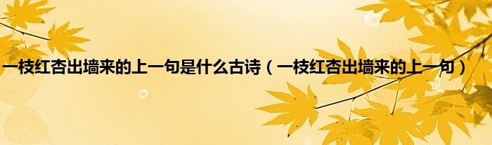 大家好,小科来为大家解答以上问题。一枝红杏出墙来的上一句是什么古诗,一枝红杏出墙来的上一句很多人还不知道,现在让我们一起来看看吧!
