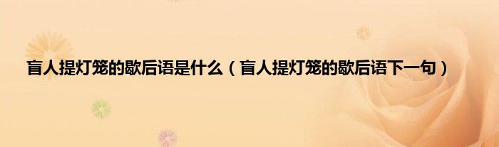 “瞎子提灯”是一句歇后语,下一句是: