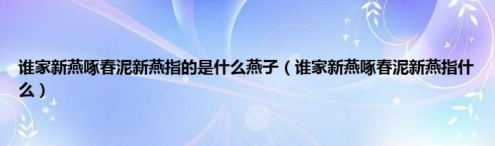 大家好,小科来为大家解答以上问题。谁家新燕啄春泥新燕指的是什么燕子,谁家新燕啄春泥新燕指什么很多人还不知道,现在让我们一起来看看吧!