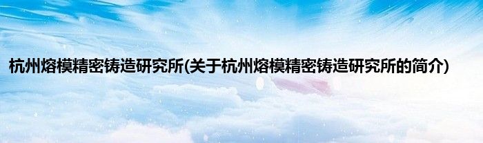 杭州熔模精密铸造研究所(关于杭州熔模精密铸造研究所的简介)