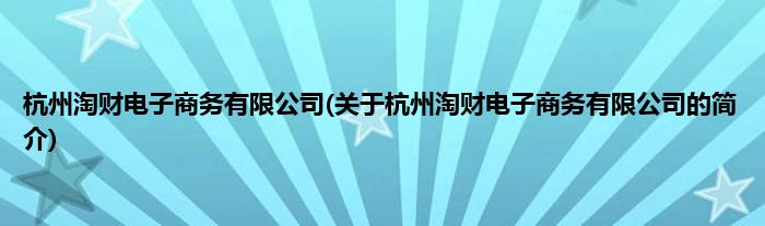 本文关于杭州淘财电子商务有限公司的简介就讲解完毕,希望对大家有所帮助。