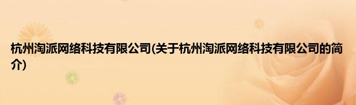 本文关于杭州淘派网络科技有限公司的简介就讲解完毕,希望对大家有所帮助。