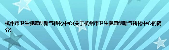 本文关于杭州市卫生健康创新与转化中心的简介就讲解完毕,希望对大家有所帮助。